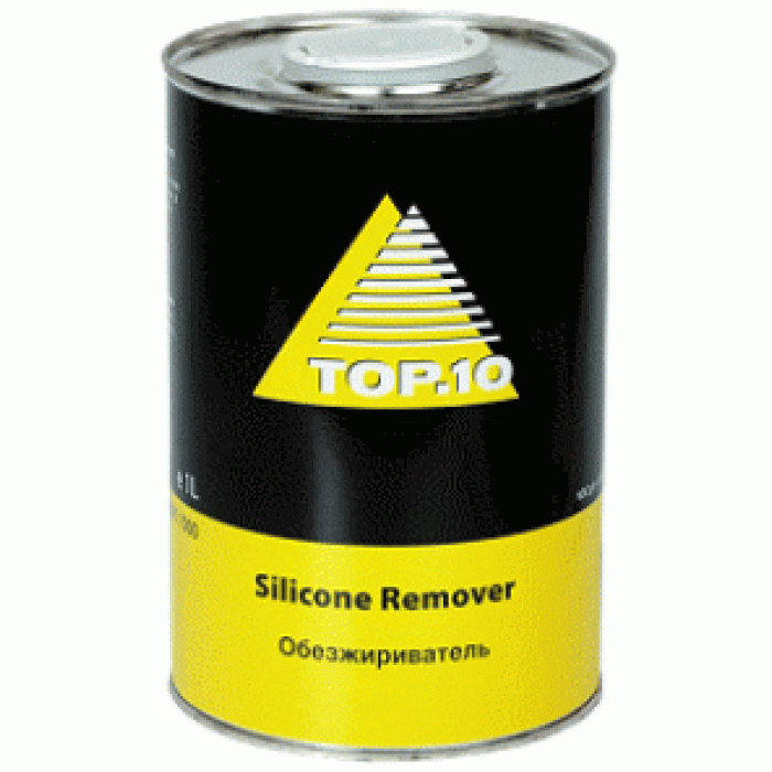 TOP.10 Очиститель силикона (обезжириватель) 1л - высококачественный очиститель силикона TOP 10 активно применяется при проведении ремонтных работ, а также в повседневной жизни автомобилиста. Очиститель силикона позволяет удалить с поверхности автомобиля остатки смол, смазки и жирные пятна. Очиститель TOP 10 применяется мастерами для предварительной обработки поверхности перед нанесением лакокрасочного покрытия, а также очистки обезжиривания поверхности при промежуточных этапах подготовки. Очиститель силикона не нарушает текстурных и светопропускных свойств пластиков, в отличии от растворителей.
