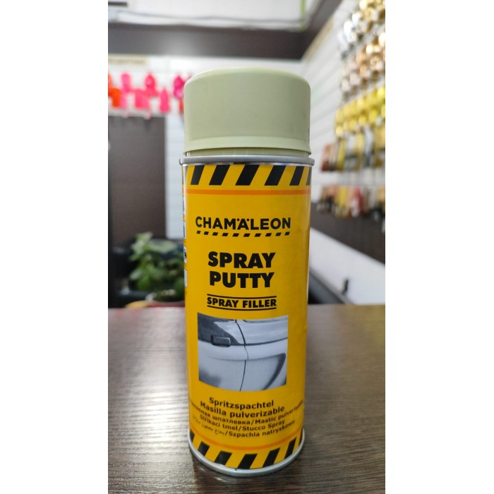 CHAMALEON (26701) Шпаклевка жидкая спрей, 400 мл - заполняет поры, царапины и другие дефекты лакокрасочного слоя методом распыления. Может наноситься толстыми слоями на металл, дерево, твёрдый пластик, стекло, старое лакокрасочное покрытие. Обладает антикоррозионными свойствами. Может быть окрашена любыми типами лакокрасочных материалов.