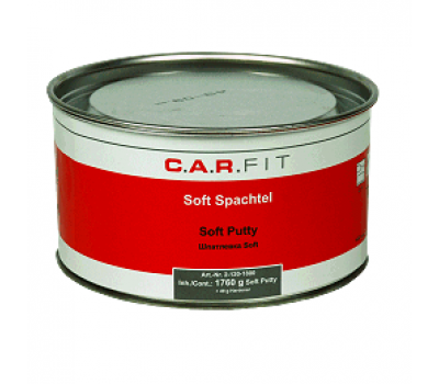 CarFit (2-124-0500) 2К Шпаклевка полиэфирная универсальная Soft Plus с отв.___0.5кг - универсальная двухкомпонентная полиэфирная шпатлевка для применения по металлическим, пластиковым, деревянным и другим малопластичным материалам. Название Soft означает мягкая. Так и есть, благодаря оптимальному сочетанию вязкости и пластичности шпатлевка CarFit Soft очень легко размешивается и действительно мягко наносится как на ровную стальным шпателем, так и на фасонную поверхность резиновым РАКЕЛЕМ. Состав шпатлевки обеспечивает после ее высыхания ровное и мягкое шлифование, без забивания абразивного материала. Обладая отличной наполняющей способностью и мелкозернистой рабочей фракцией, универсальная шпатлевка CarFit не оползает на вертикальных участках, не растрескивается при высыхании и дает поверхность высокого качества после обработки. Отвердитель необходимо добавляеть в шпаклёвку 2-3% от общей массы. Универсальная шпатлёвка CarFit наносится на поверхность со снятым глянцем скотчбрайтом или файном без воды вручную или кругом Р240-280 на шлифмашинке, а также обязательно обезжиренную очистителем силикона. Наносить универсальную шпатлёвку необходимо слоями толщиной до 2-х мм с обязательной просушкой и обработкой каждого слоя. Общая толщина слоя универсальной шпатлёвки CarFit не должна превышать 5 мм. Обрабатывается универсальная шпатлёвка CarFit малярными брусками и рубанками с абразивными полосами Р80-180 и абразивными губками Fine,а также шлифмашинкой с кругами Р80-Р320 методом "на сухую". Помнить о правиле "градация 100": риску от грубого абразивного материала перебить абразивом на 100 ед. выше предыдущего, тогда просадки грунта в последствии не будет. Если вы работаете с применением воды, используйте водостойкую наждачную бумагу Р400-800. Если есть необходимость нанести более толстый слой шпаклёвки, то следует применять полиэфирные шпаклёвки с разными наполнителями (стекло, алюминий, карбон) или попросить жестянщика более аккуратно сделать свою работу. Шпатлевка CarFit Soft очень удачная универсальная шпатлёвка, по качеству соответствует абсолютно всем профессиональным пожеланиям, работаем ей много лет - рекомендуем.