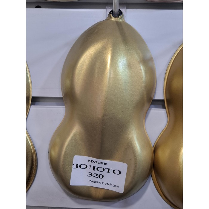 Краска ЗОЛОТО 320 для металла, дерева, пластика, стекла (не прозрачно), бетона, на органическом растворителе на развес от 100 грамм предназначена для покраски изделий из металла, пластика, дерева, стекла (не прозрачно), гипса, бетона. Краска имеет высокую устойчивость к эксплуатационным и атмосферным воздействиям. Краска золото однокомпонентная и готовая для применения кистью или валиком. Для покраски краскопультом в краску нужно добавить 50% органического растворителя для базы (есть у нас в продаже). Краска под золото имеет отличную укрывистость, что позволяет её наносить в 2-3 слоя для получения полного эффекта золотой поверхности не зависимо от цвета подложки. Однако, для максимальной имитации металла, краску рекомендуем наносить на чёрную глянцевую подложку.