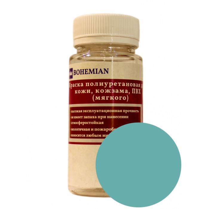 Краска BOHEMIAN (RAL 6034) полиуретановая для кожи, кожзама, ПВХ мягкого, тканей - 100г