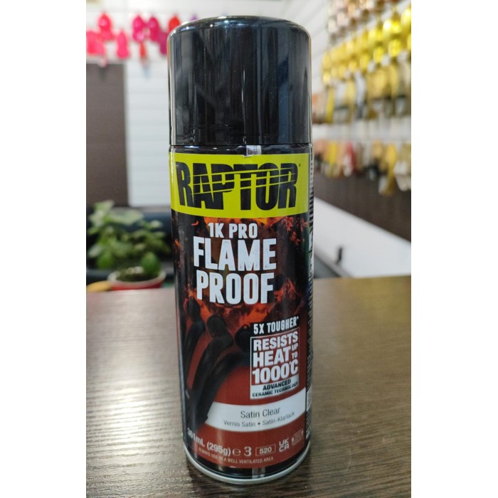 Огнестойкий прозрачный полуматовый лак профессионального качества в аэрозольном баллоне 400 мл идеально подходит для использования на поверхностях, окрашенных огнестойкой краской RAPTOR, таких как выпускные коллекторы, коллекторные головки, выхлопные системы и другие области, требующие защиты от очень высоких температур.