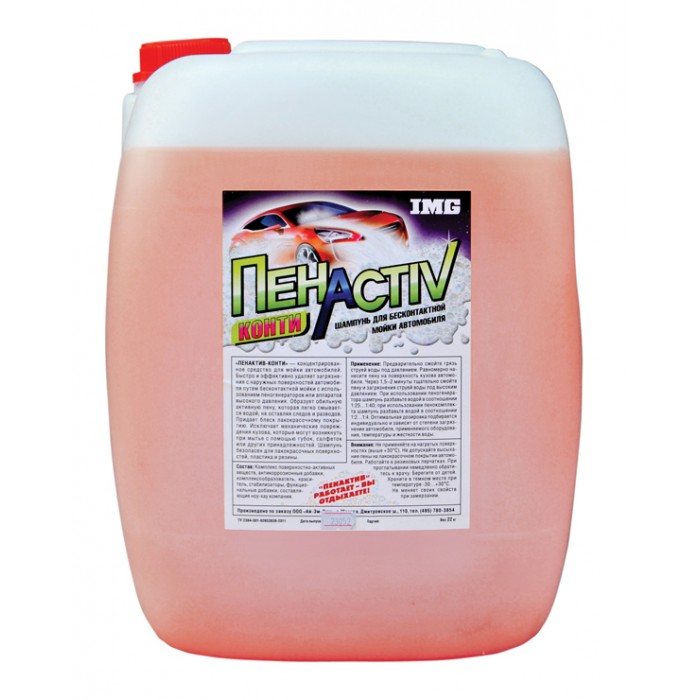 ПенАктив Шампунь "Конти" - это бюджетное средство для бесконтактной мойки . Обладает высокой степень пено образования и предназначено для деликатной мойки автомобиля . Не оказывает негативного влияния на лакокрасочные , полимерные и резиновые поверхности .