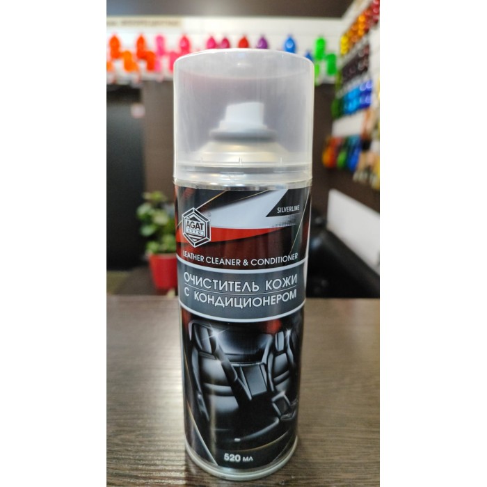 AGAT SL0213 очиститель-кондиционер кожи, спрей 520мл - предназначен для удаления эксплуатационных загрязнений с кожаного салона автомобиля, мотоцикла, мебели, кожаной обуви и одежды. Увлажняет, очищает, восстанавливает свежесть и кондинционирует любые типы гладкой кожи, обладает приятным ароматом новой кожи.Не подхит для замши, нубука, алькантары. Применение простое: взболтать очиститель - кондиционер кожи в баллончике, нанести и располировать мягкой тканью до полного впитывания.