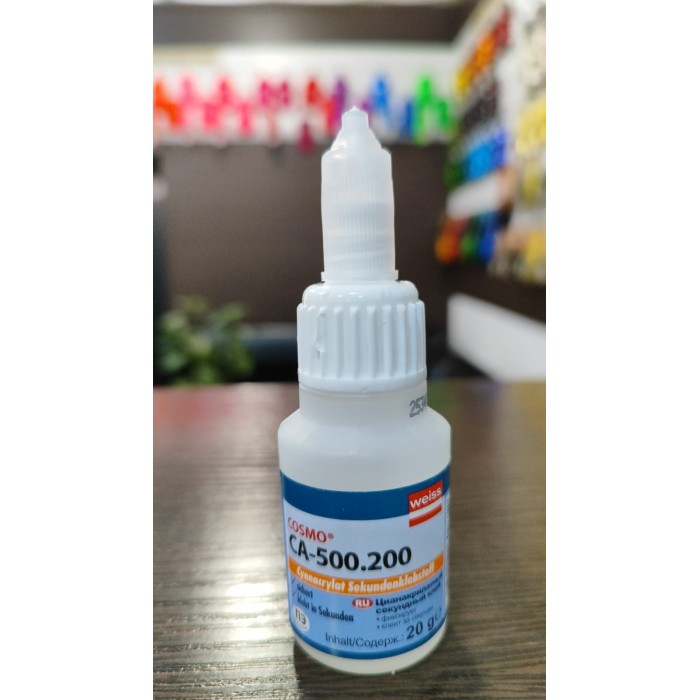 Цианоакрилатный клей COSMOFEN COSMO CA-500.200 - секундный супер-быстрый клей, обладает повышенной прочностью. По результатам испытаний клей Космофен CА-12 признан лучшим "секундным" клеем в области как бытового, так и промышленного применения! Благодаря своим уникальным характеристикам клей Космофен имеет самый широкий спектр областей применения: в быту - прекрасно склеивает все виды пластика, резину, металл, керамику и стекло, незаменим при проведении сантехнических работ, при производстве рекламной продукции, игрушек, в сфере сервисного обслуживания и ремонта автомобилей. Время выдерживания склеиваемых поверхностей составляет считанные секунды. При застывании супер клей момент образует прозрачную пленку, не заметную для глаз. Не использовать клей для склеивания пористых поверхностей. Клей CA-12 очень практичен и легок в применении.
